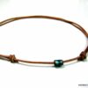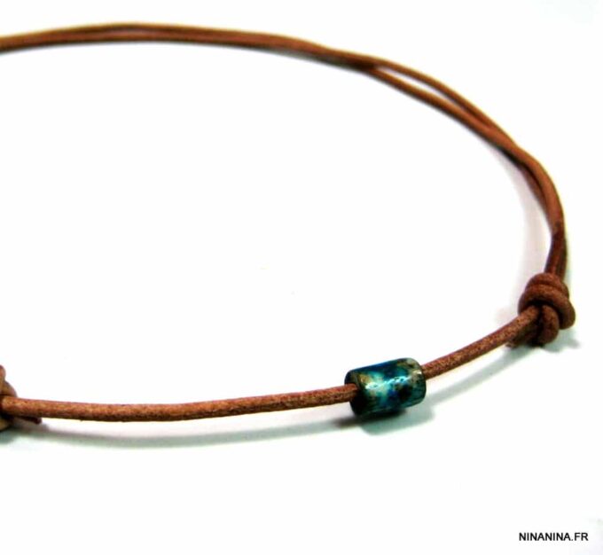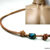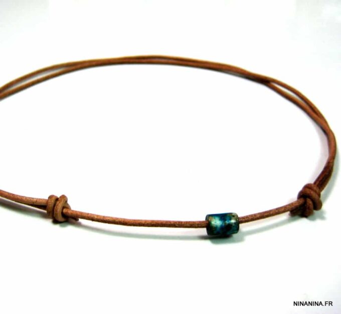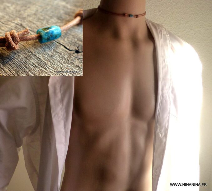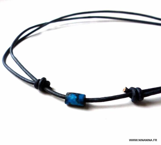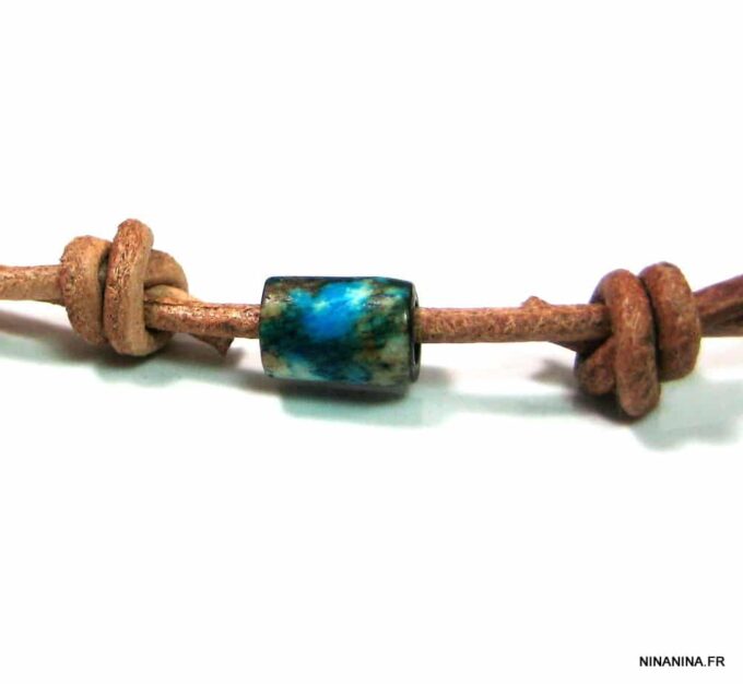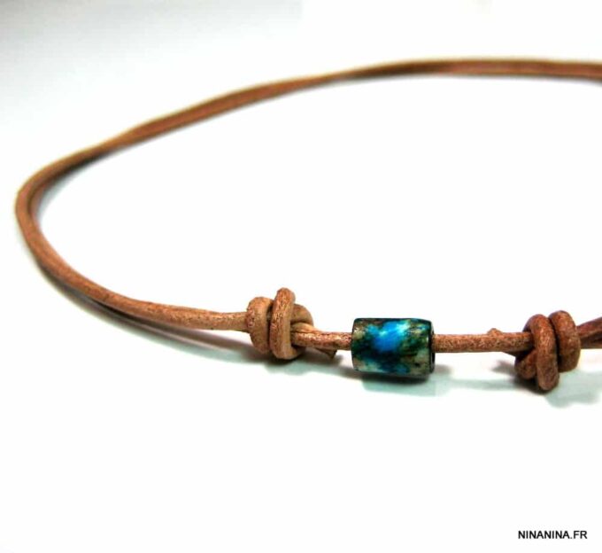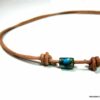 Collier cordon cuir os organique turquoise en os organique montée sur un cordon de cuir naturel (2 mm de diamètre).