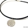 Collier cordon Cuir femme pendentif rond plaqué Argent