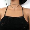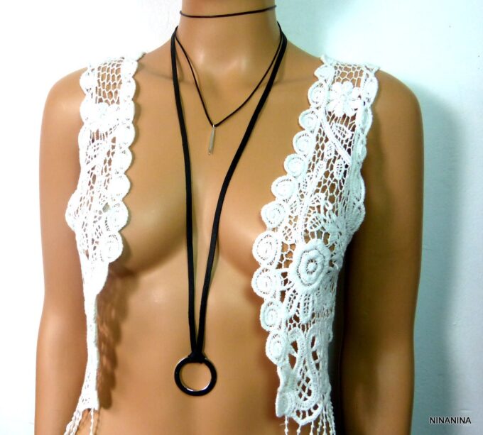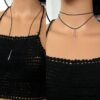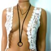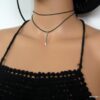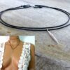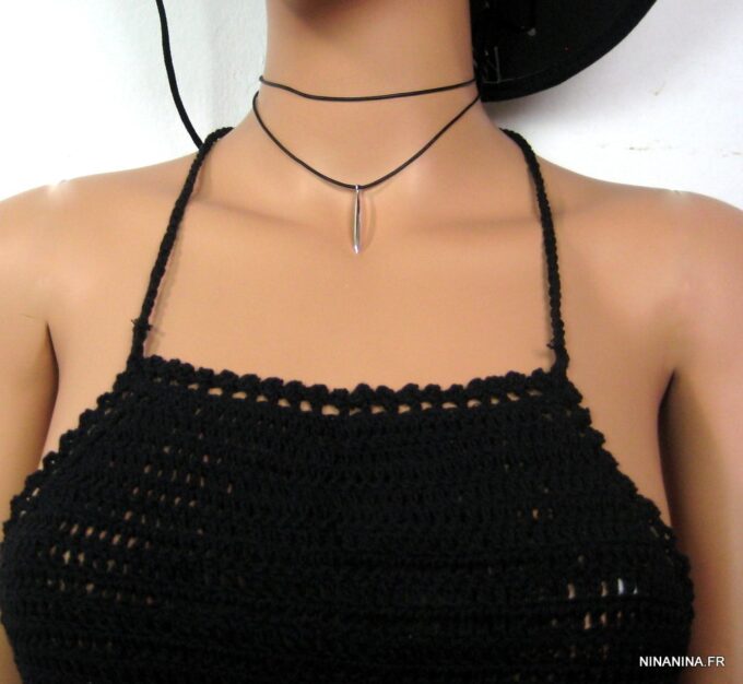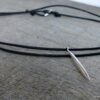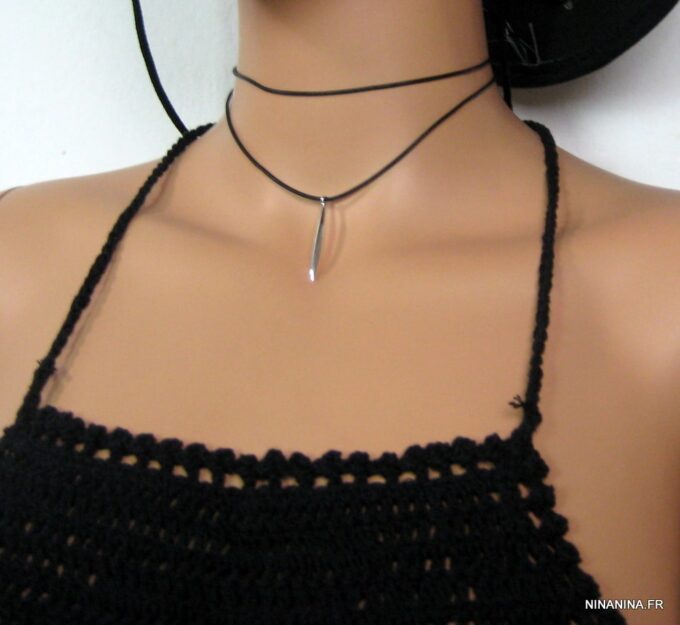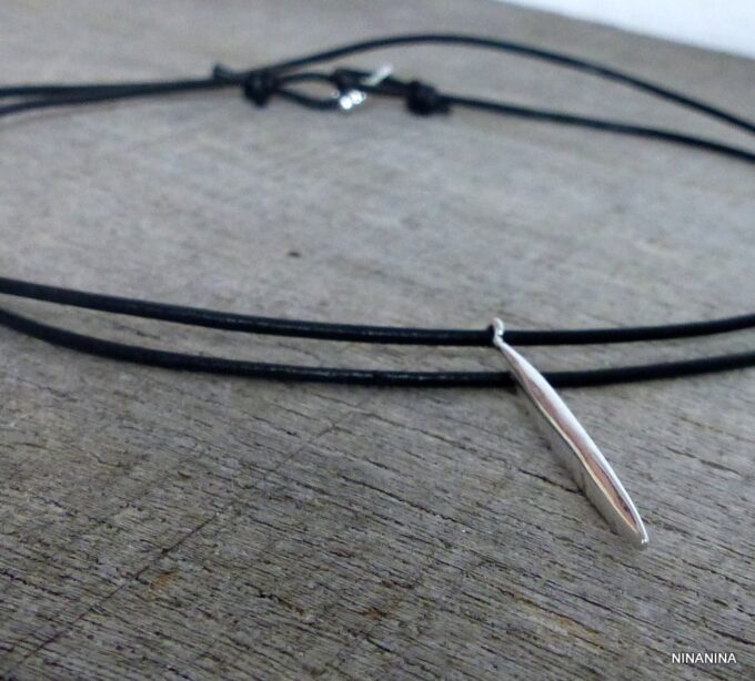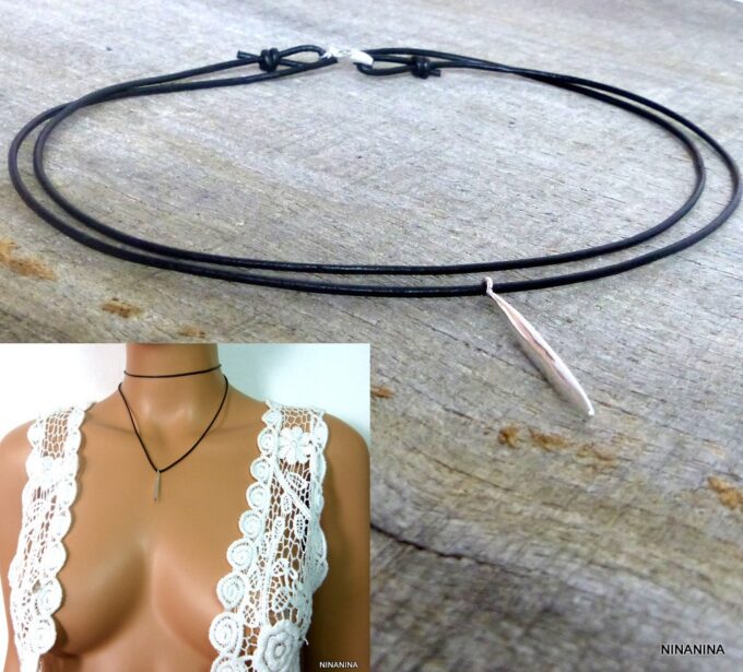 Collier cordon Cuir long noir femme plaqué Argent composé d’un pendentif rectangulaire en plaqué argent monté sur cordon de cuir noir (1, 5 mm de diamètre).
