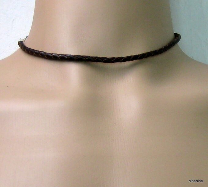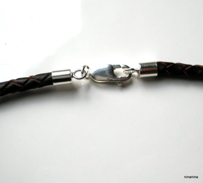 Collier homme Cordon Cuir tressé Argent 925 massif composé d’un cordon de cuir tressé monté sur un fermoir mousqueton en argent 925.