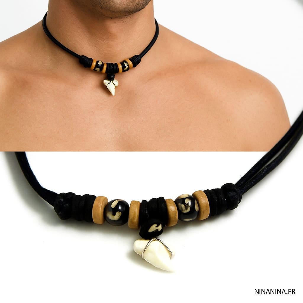 Porter un collier tribal homme dent de requin affirme votre connexion à la mer, à la nature et à votre instinct primal.