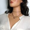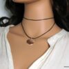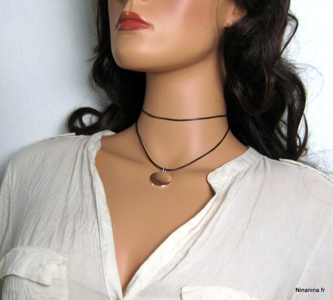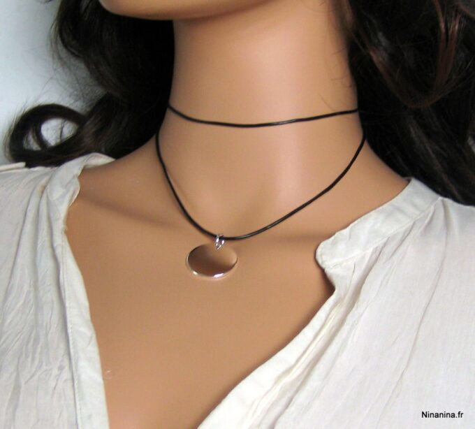 Ras de cou cordon cuir femme pendentif rond argent