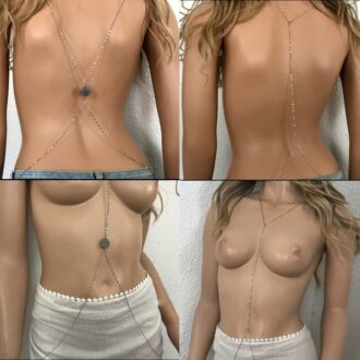 Une rosace argentée filigranée, des petites boules argent délicatement réparties sur une chainette maille satellite qui courent de votre cou à votre dos en passant par votre taille, cette Chaine de corps plaqué or très originale ne manquera pas de vous séduire !