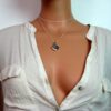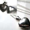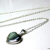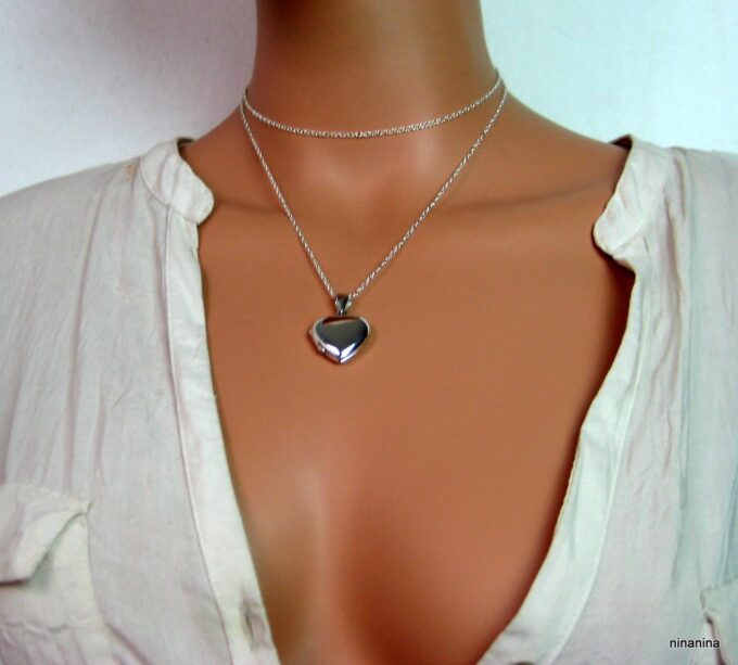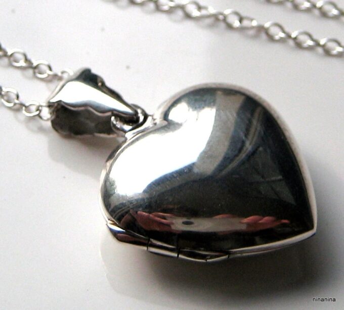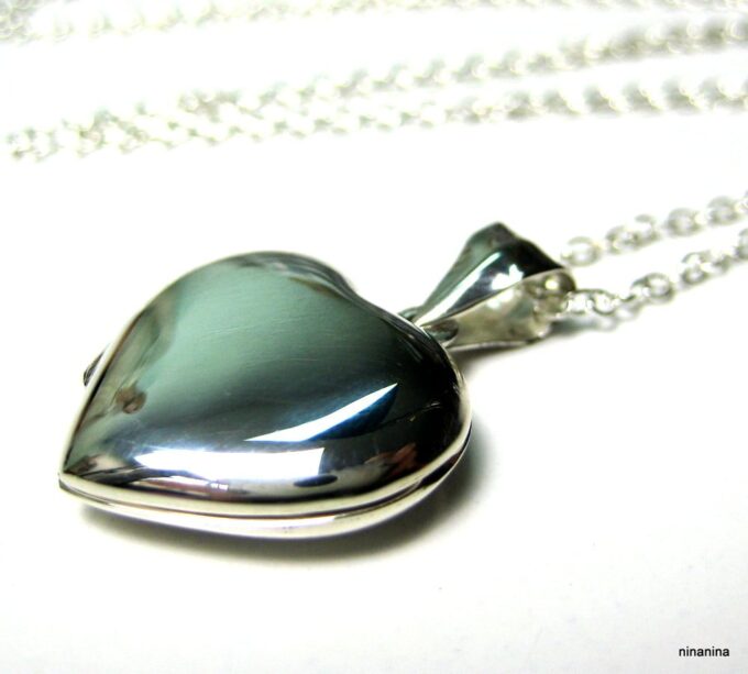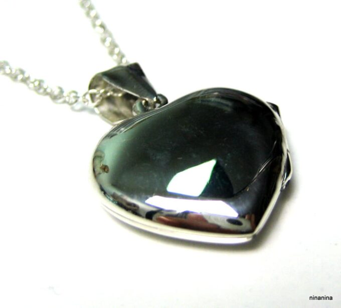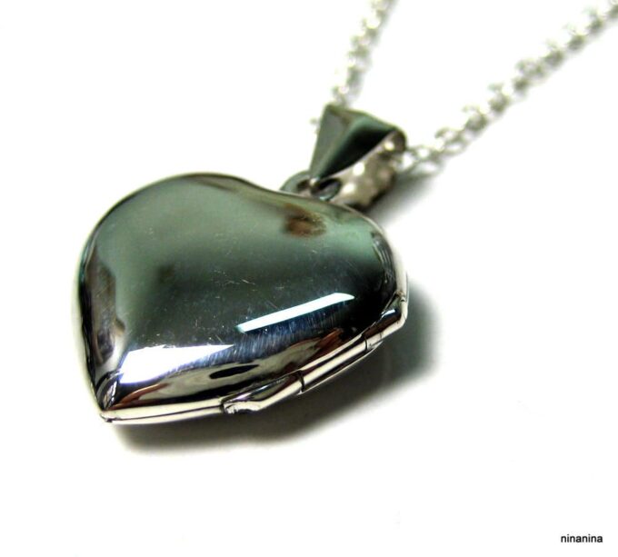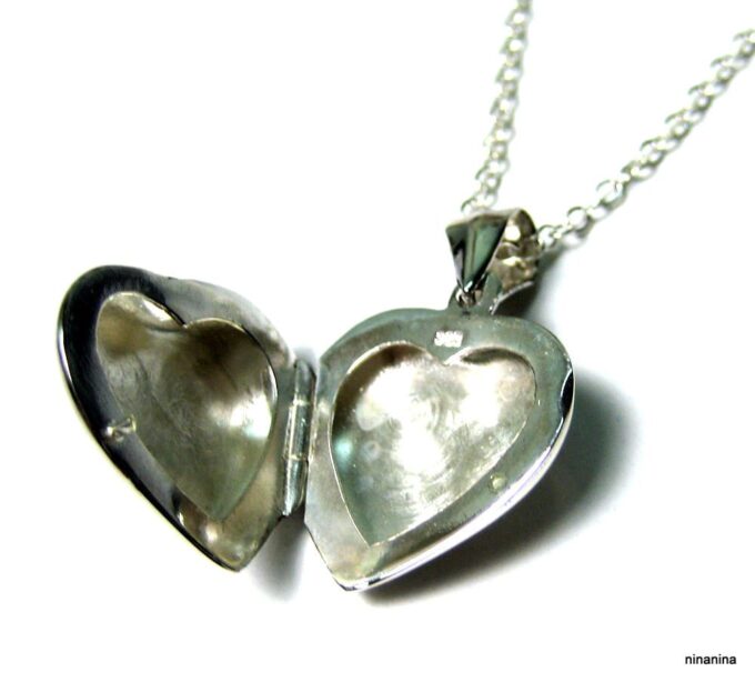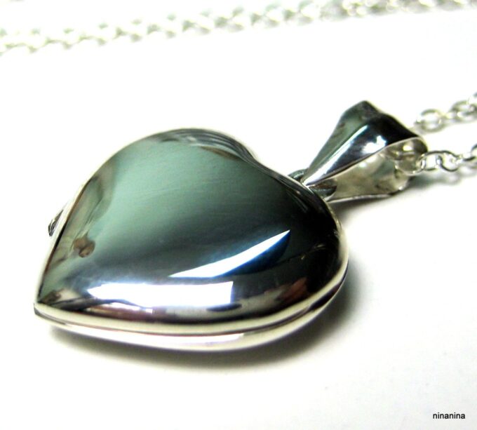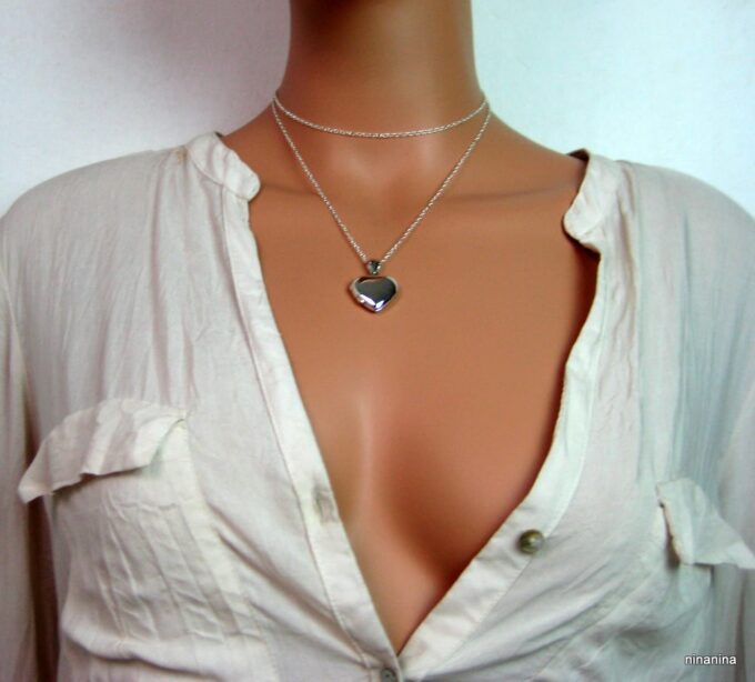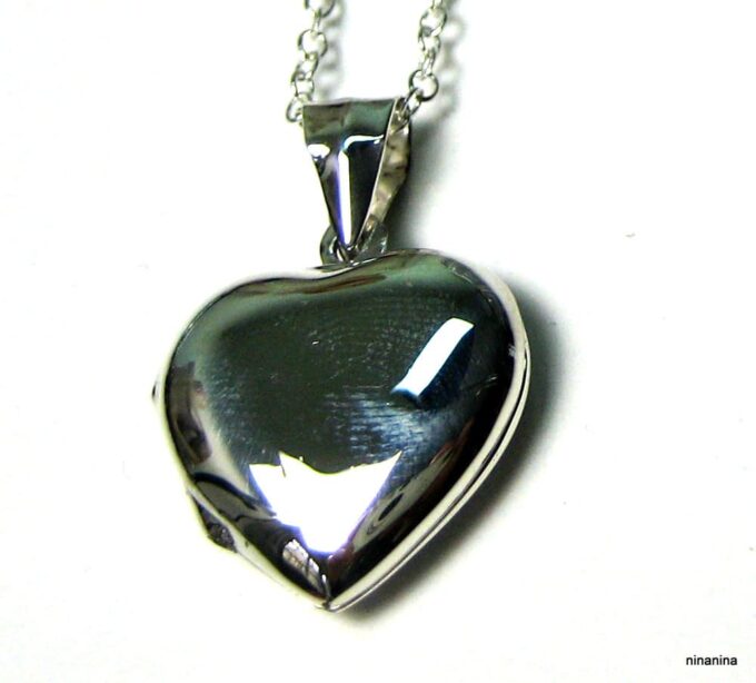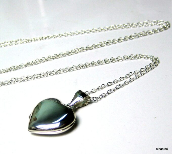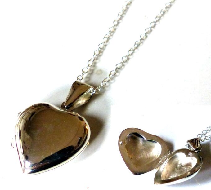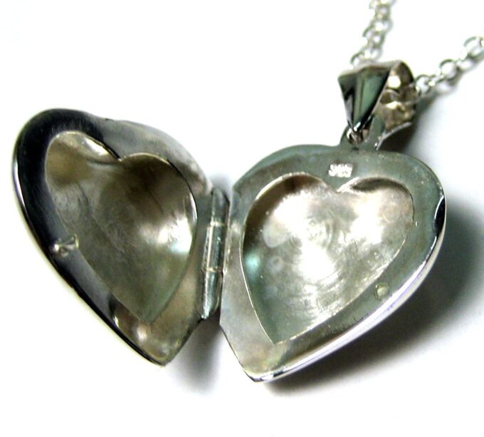 Collier femme long coeur porte photo argent massif composé d’un pendentif coeur porte-3photo en argent 925 monté sur une chaînette (1mm de diamètre) en argent 925.