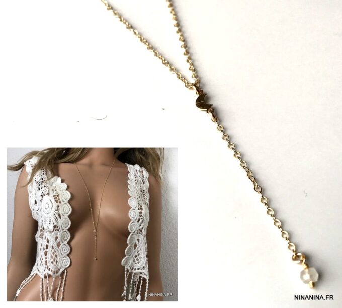 Vous allez craquer pour le minimalisme et l’originalité de ce sublime Collier Cravate Or jaune Plaqué femme pierre de lune constitué d’un croissant de lune en plaqué or 14 carats gold filled et d’une petite perle ronde en pierre de lune véritable montés sur une Chaîne en plaqué or maille forçat.