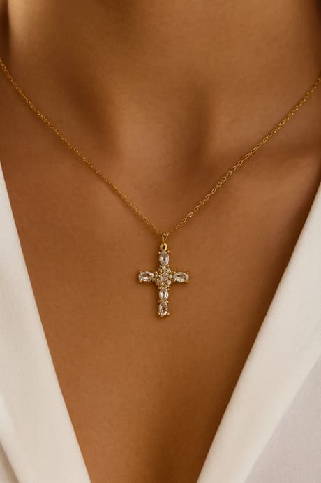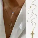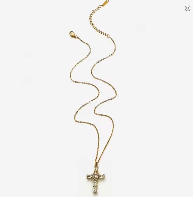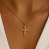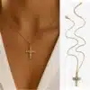 - Modèle C : Collier croix femme en acier doré avec strass CZ – bijou tendance