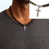 Ce Collier croix homme de haute qualité est fabriqué à la main, de façon artisanale et en série limitée. Chaque pièce faite sur mesure convient pour la majorité des statures. Longueur : 70 cm. Diamètre des pierres : 6 mm. Merci de préciser si vous préférez une autre longueur.