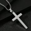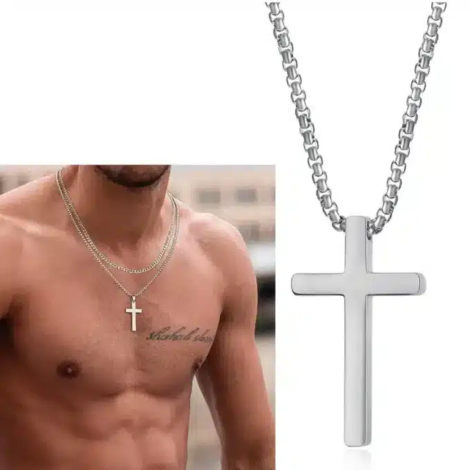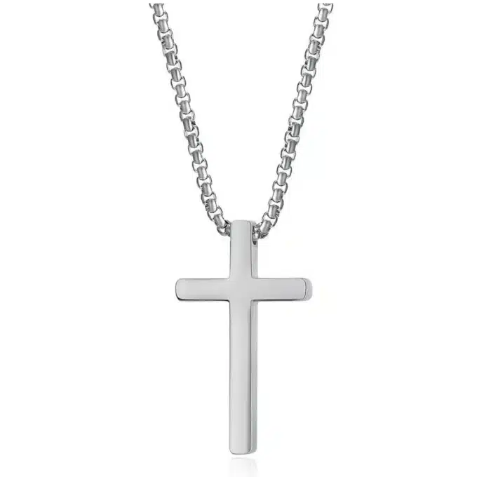 Affichez votre foi tout en virilité, ce Collier Croix Chrétienne Acier Inoxydable Argent Homme composé d’un pendentif croix en acier inoxydable argent, aussi appelé acier chirurgical monté sur une Chaîne en Acier maille vénitienne sobre et élégante.