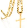 Affichez votre foi tout en virilité avec ce magnifique Collier Croix De Jésus Or Acier Inoxydable Doré Homme ! Composé d’un pendentif en forme de croix en acier inoxydable doré monté sur une solide Chaîne en Acier maille figaro sobre et élégante, ce collier pour homme très Rock’nRoll fera un beau cadeau.