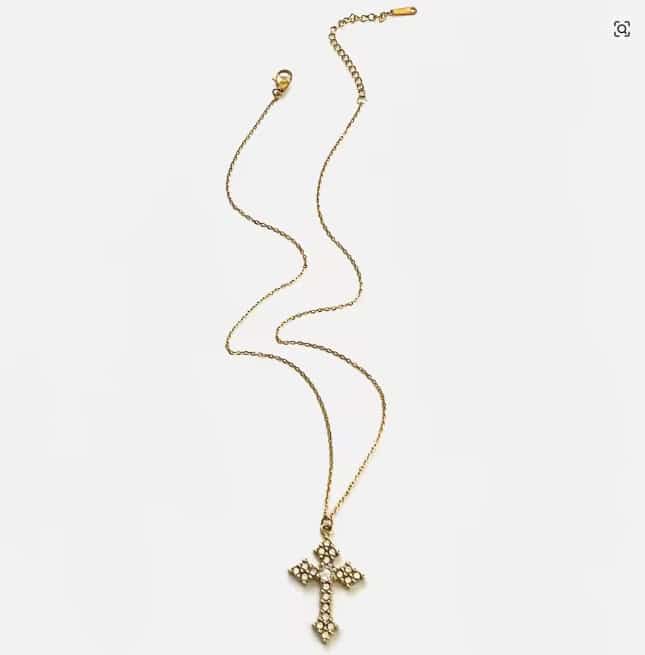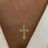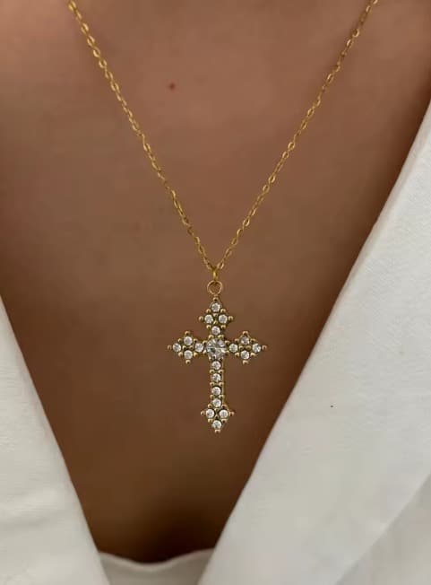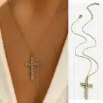 Collier croix doré pour femme – pendentif orné de strass brillants