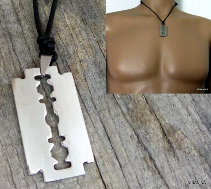 Si vous aimez les colliers homme, ce collier et son pendentif lame de rasoir ajouteront sans effort une touche rebelle à votre look unique. Look bad boy et virilité assurée!