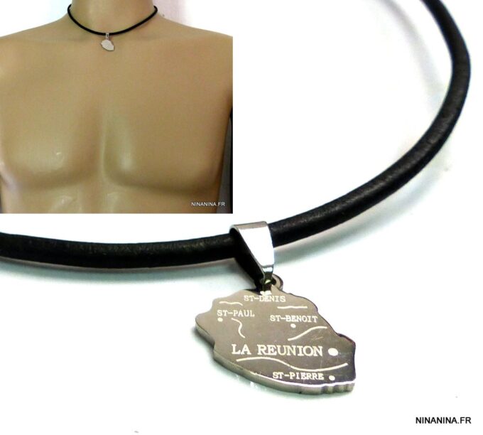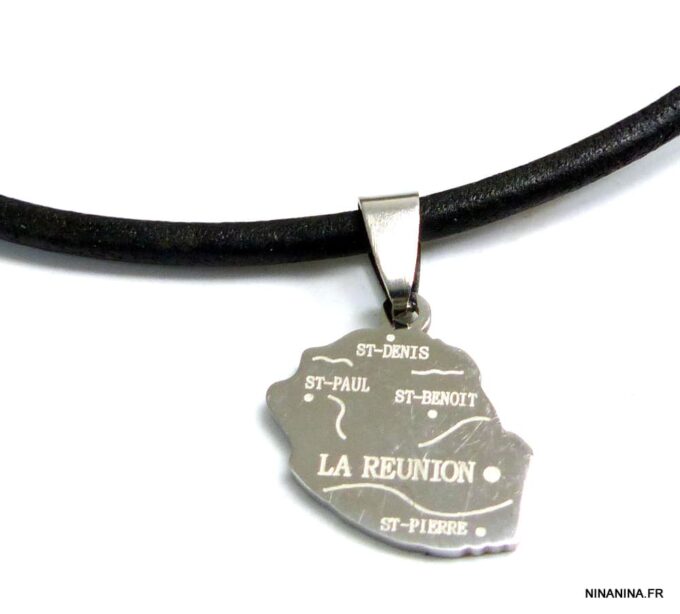 Pendentif Ile De La Reunion Acier Inoxydable Collier