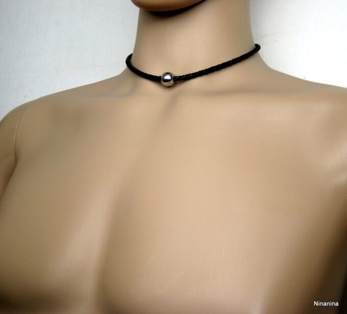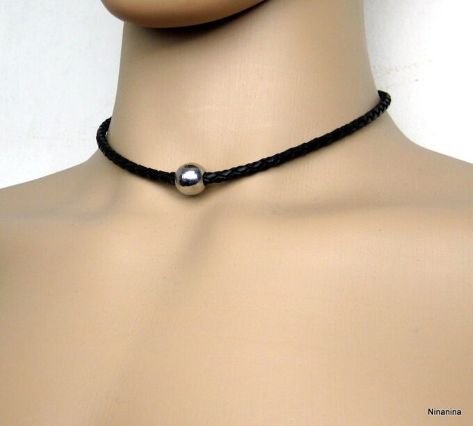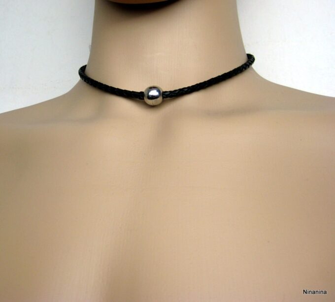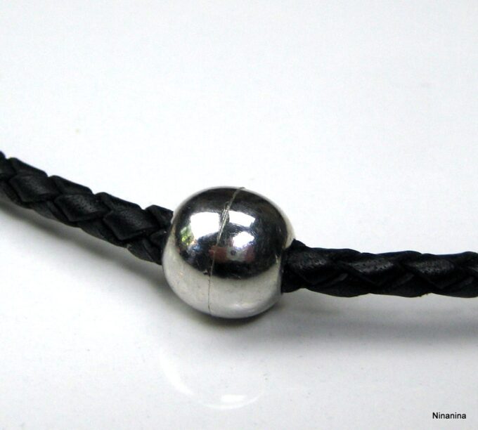 Collier homme cuir tressé acier inoxydable argenté composé d’un cordon de cuir tressé monté sur un fermoir rond aimanté en acier inoxydable.
