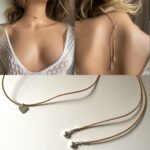 Collier de dos original cordon cuir breloque coeur Argent style boheme