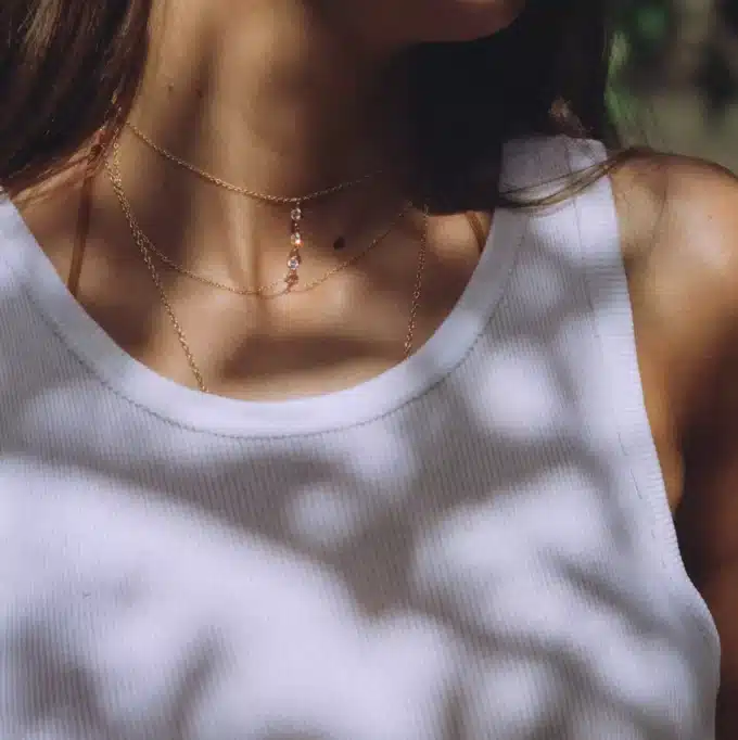 Un mètre ou une ficelle fera l’affaire. Il vous suffit de mesurer le tour de votre cou à l’endroit où vous souhaitez poser le collier et vous laissez une petite marge pour l’arrondi de la chaîne pour ne pas être gênée par un bijou trop serré.