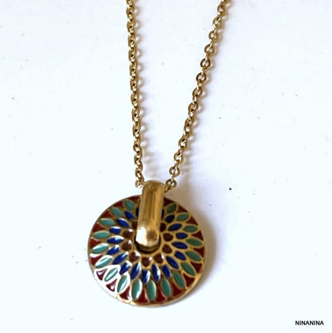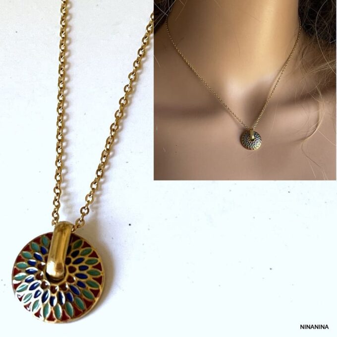 Collier Émaillé Pendentif Rond Bleu Vert Rouge : Un bijou coloré qui attire les regards