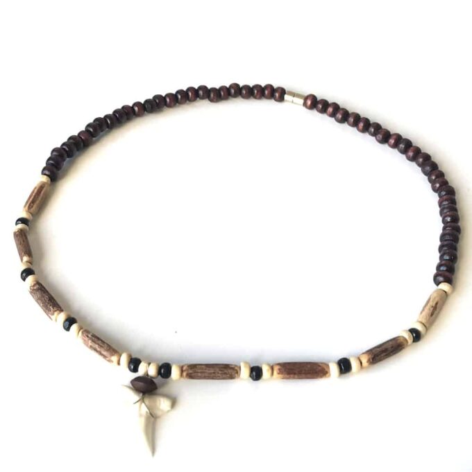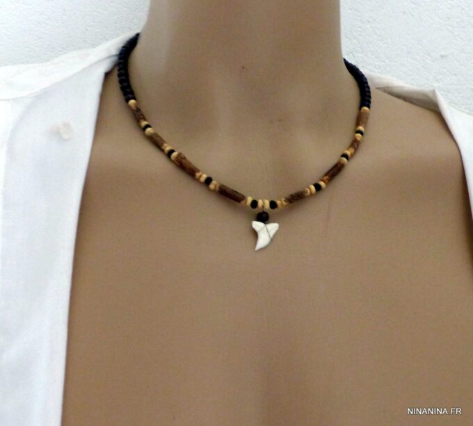 Soyez le premier à laisser votre avis sur “Collier ethnique pendentif Dent de requin perles bois”