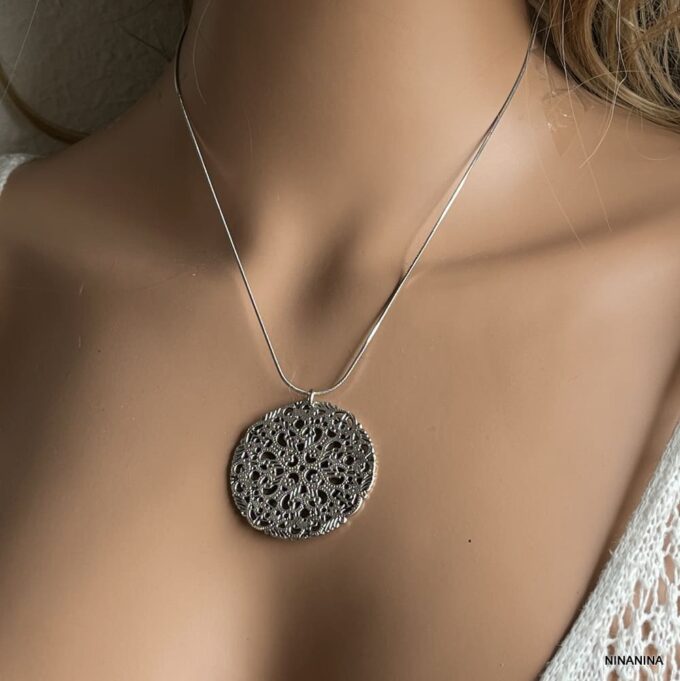 Collier Fantaisie pour Femme : Un pendentif dentelle au charme ethnique