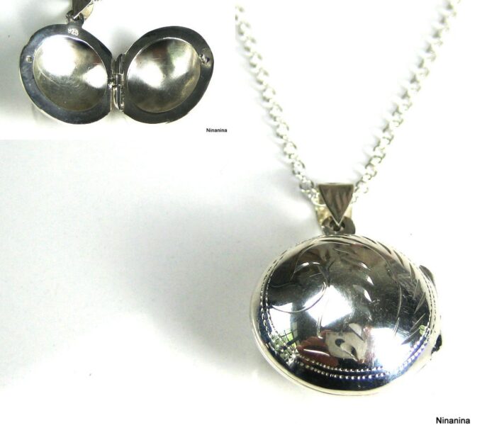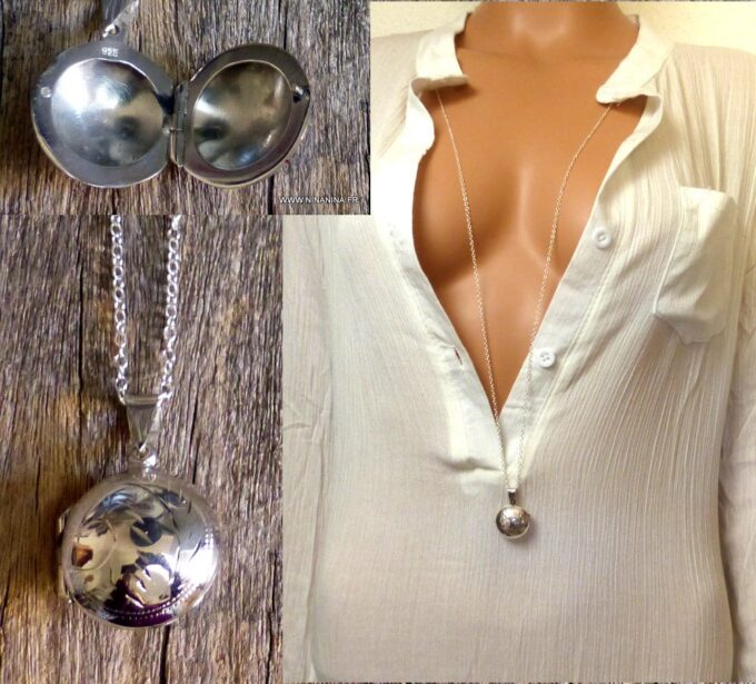 Sautoir porte photo pendentif rond Argent 925 – Collier long composé d’un pendentif rond porte-photo en argent 925 monté sur une chaînette (1mm de diamètre) en argent 925.