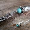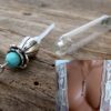 Bouchon en métal argenté réhaussé d’une fleur en turquoise et métal argenté.