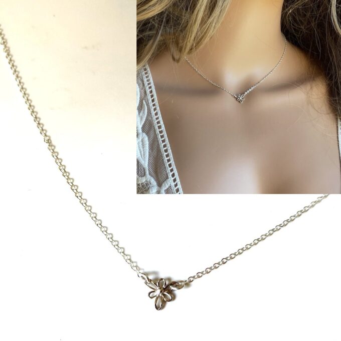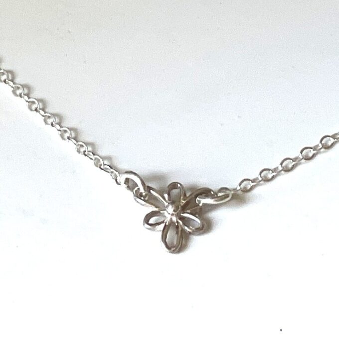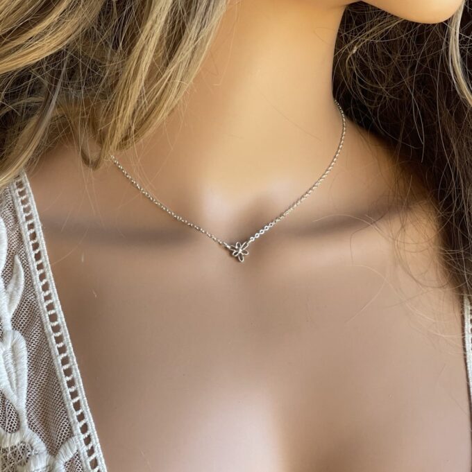 Collier fleur Argent 925 massif – ras de cou femme composé d’une petite fleur en argent 925 montée sur une chaînette en argent 925.