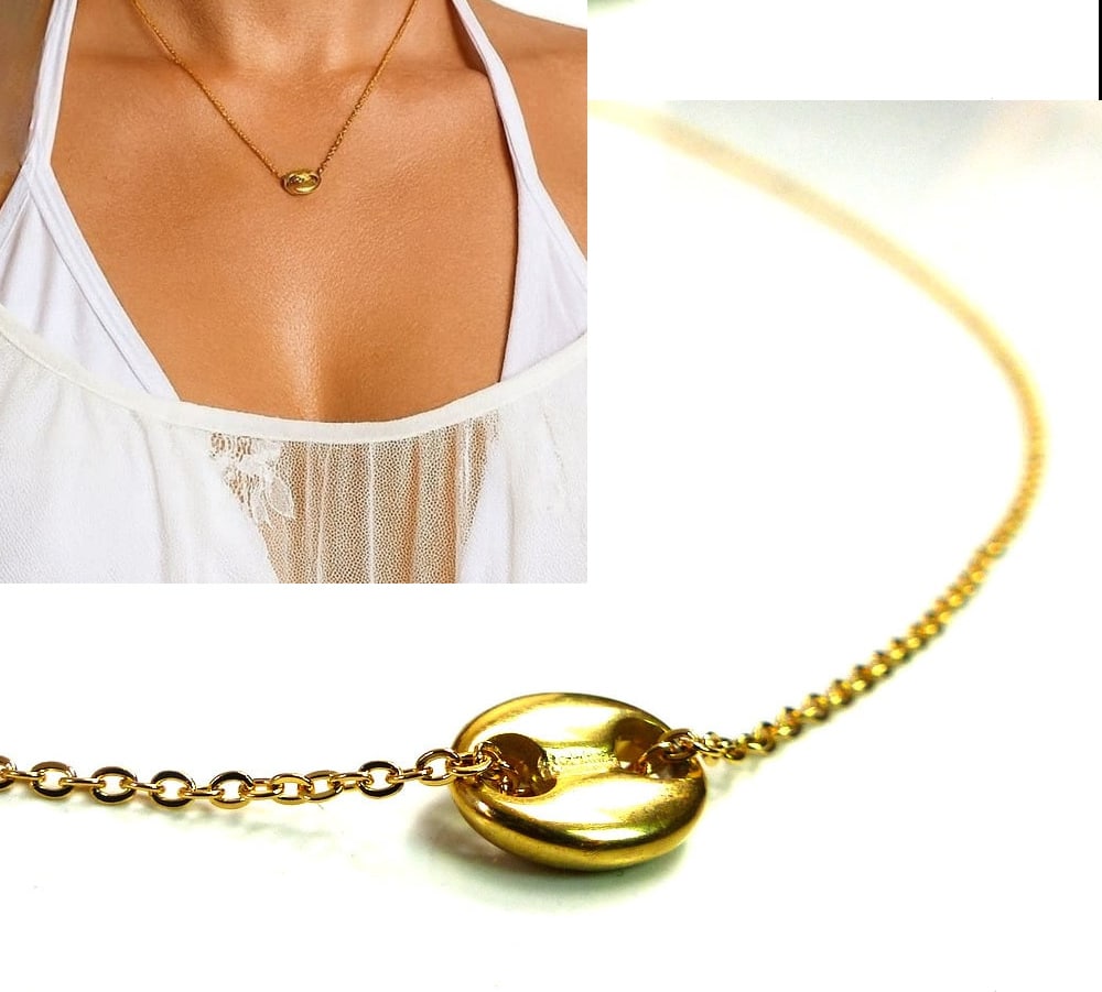 Le maillon grain de café, subtilement façonné, apporte une touche à la fois chic et bohème. Porté sur sa chaîne fine et dorée, il crée un collier doré élégant et minimaliste, idéal pour accompagner vos tenues quotidiennes ou habillées. Grâce à son style intemporel, il peut être porté seul pour un effet discret ou en superposition (layering) pour un look plus tendance.