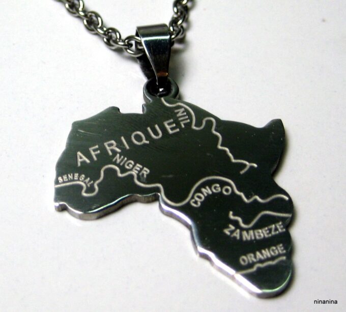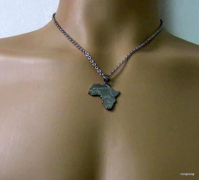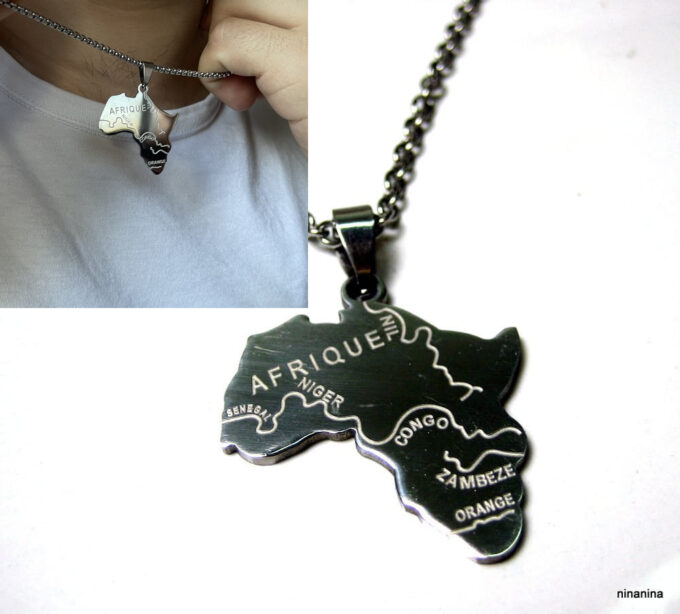 Voici un bijou symbolique qui fera plaisir à plus d’un africain (et d’une africaine) vivant loin de leur pays! Pour les étudiants en france, les expatriés, les nostalgiques et amoureux de ce beau pays, cette petite carte de l’afrique à porter au cou, mettra vos racines bien en évidence et vous aidera à garder en tête le souvenir de vos dernières vacances!