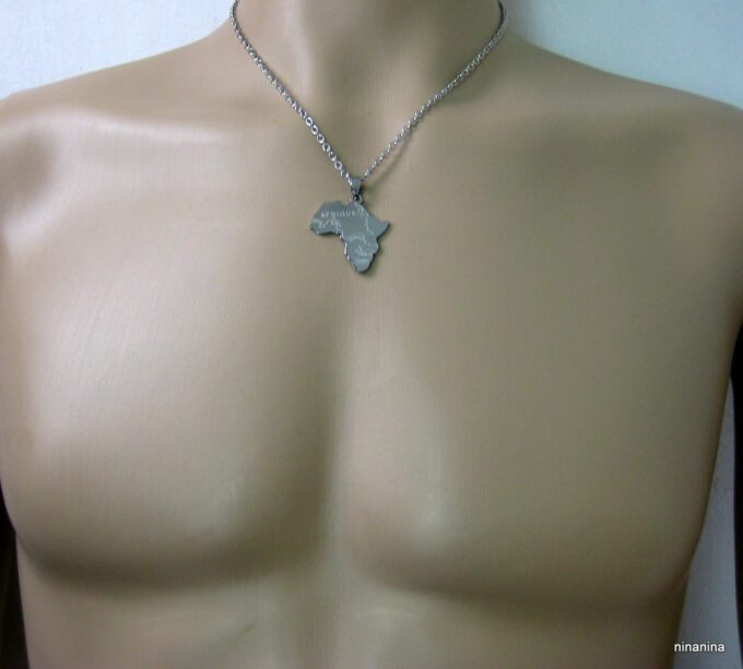 Collier Afrique – Pendentif Acier Inoxydable Argent : Symbole d’Identité et d’Élégance