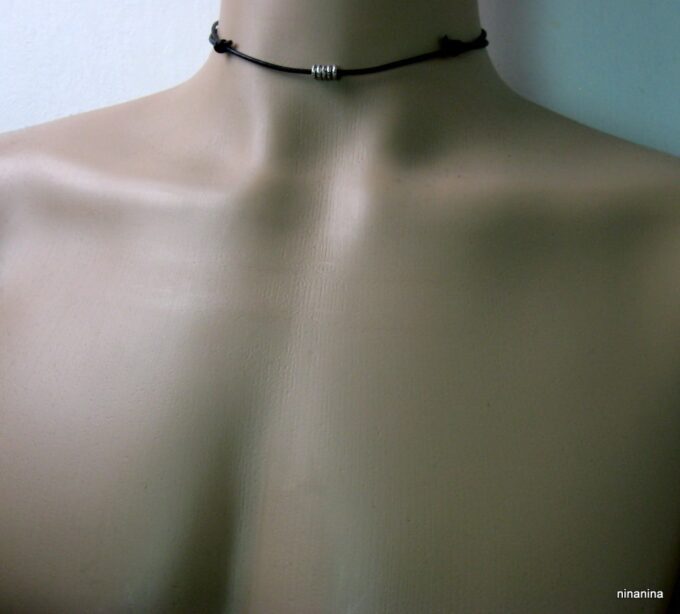 Soyez le premier à laisser votre avis sur “Tour de cou cuir rondelles argent – Collier Cordon noir”