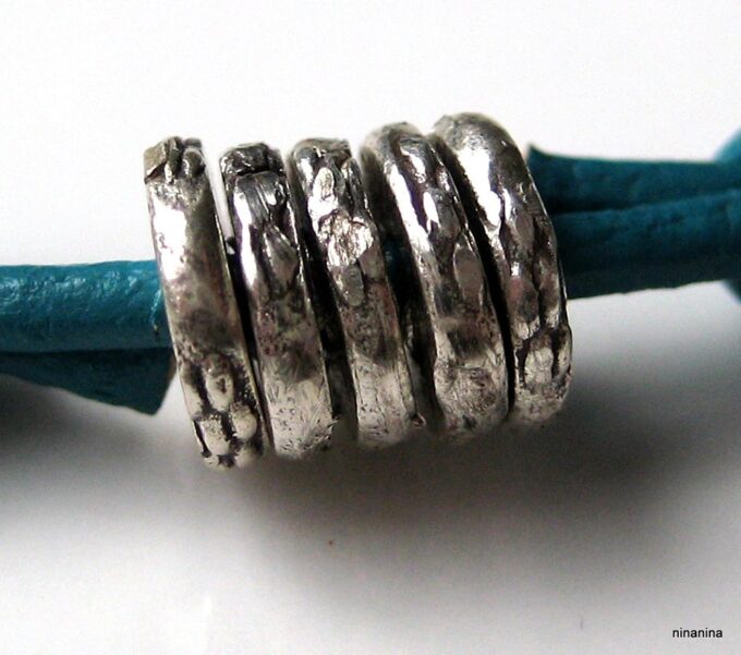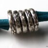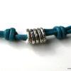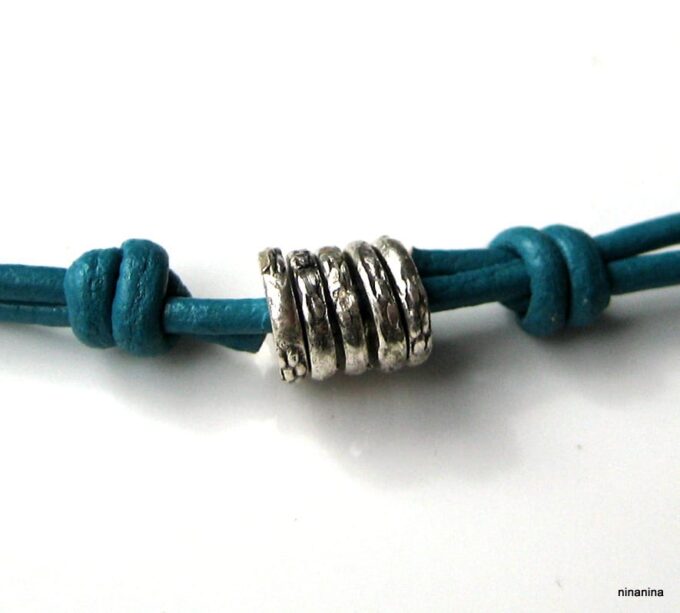 Tour de cou cuir rondelles argent – Collier Cordon noir composé de 5 disques ciselés en argent 925 montés sur un double cordon en cuir turquoise (2 mm de diamètre).