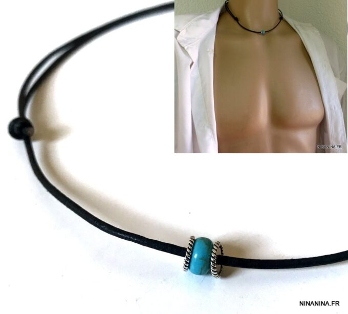 Soyez le premier à laisser votre avis sur “Collier cordon cuir homme ajustable turquoise et argent”
