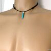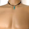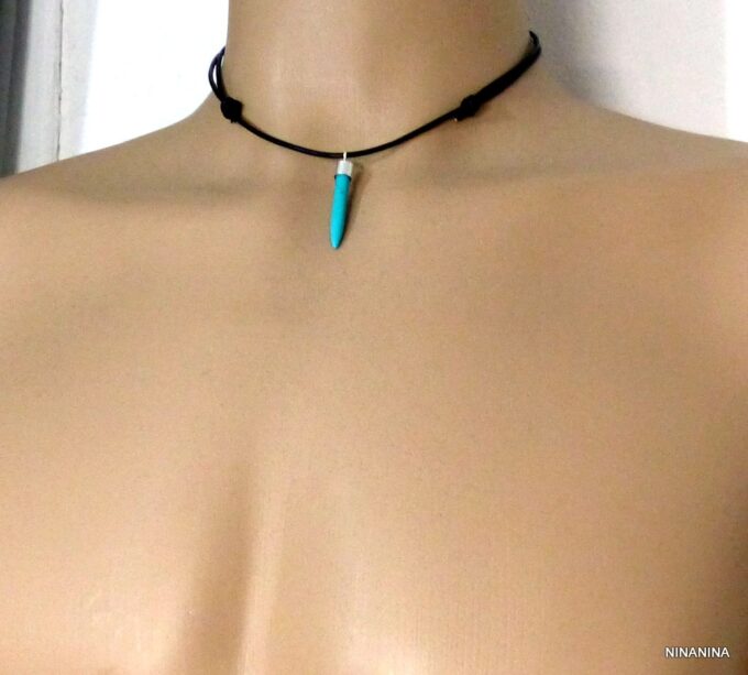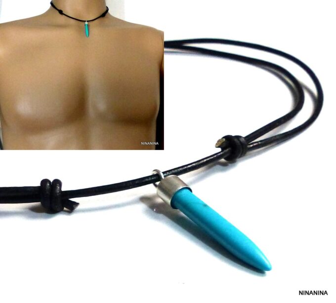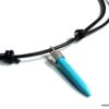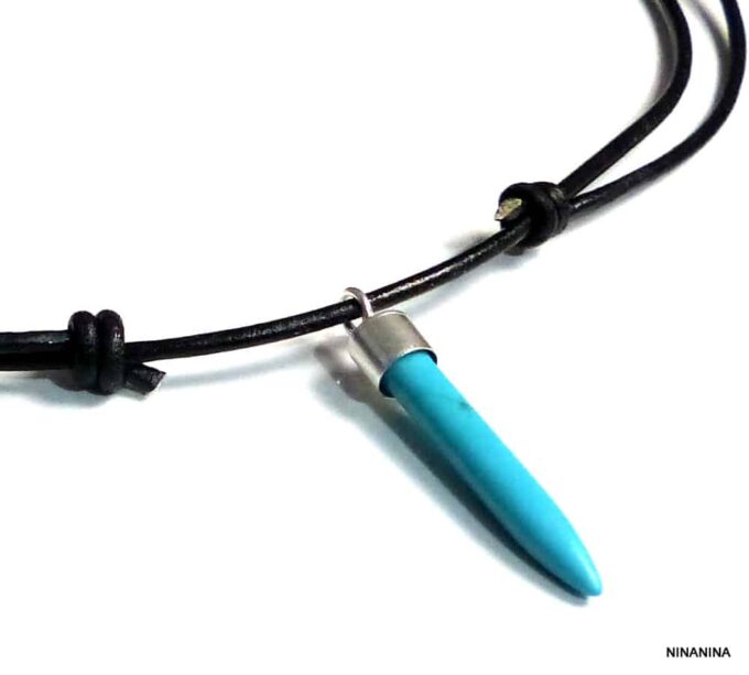 Collier cordon cuir pendentif turquoise Argent 925 massif composé d’un pendentif turquoise et argent 925 monté sur un cordon de cuir noir (2 mm de diamètre).