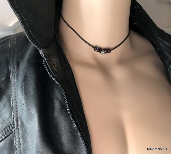 Collier homme cordon cuir réglable personnalisable et modifiable à souhait!