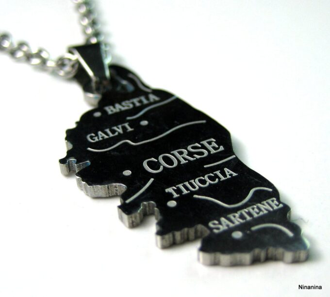 Pour les amoureux de l’ile de beauté, les corses loin de leur ile, ou les nostalgiques de vacances inoubliables passées sur cette ile paradisiaque, pour ceux qui garderont toujours la Corse dans un coin de leur coeur, corses expatriés, vacanciers qui y ont des attaches particulières, ce Collier carte de corse vous permettra d’avoir un petit peu de cette ile paradisiaque autour du cou!