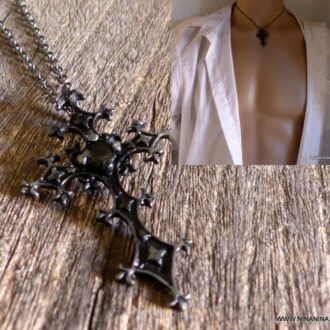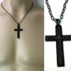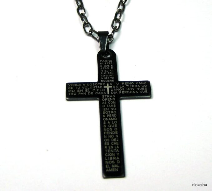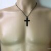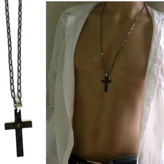 Collier croix chrétienne homme Acier inoxydable noir composé d’une croix en acier inoxydable noir montée sur unechaine maillons ovales en métal noir.