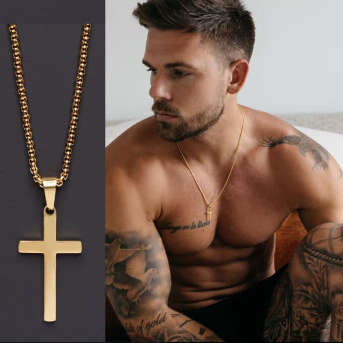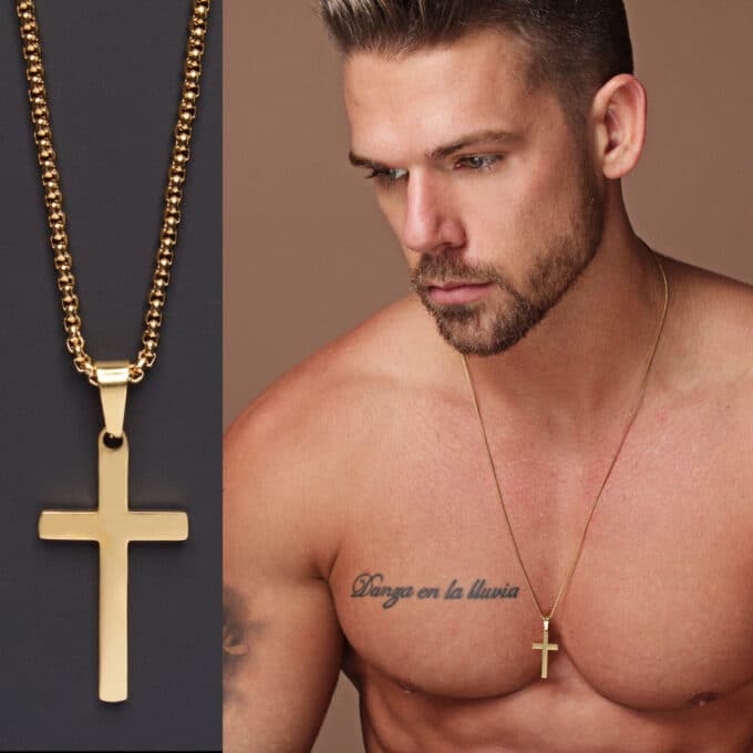 Ce collier homme croix doré est extrêmement polyvalent et peut être porté de différentes manières pour divers looks. Pour un style décontracté, associez-le à une chemise ouverte ou un t-shirt simple.