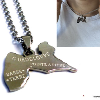 Collier homme cordon cuir MARTINIQUE acier argenté? composé d’un pendentif MARTINIQUE en acier inoxydable monté sur un lien de cuir véritable (3mm de diamètre).