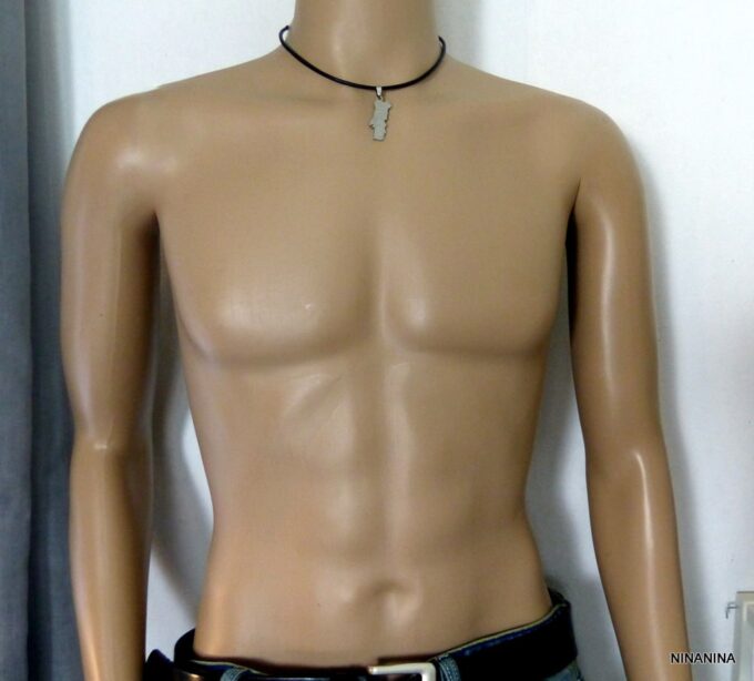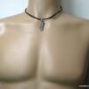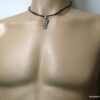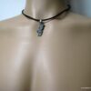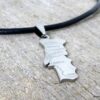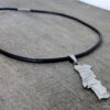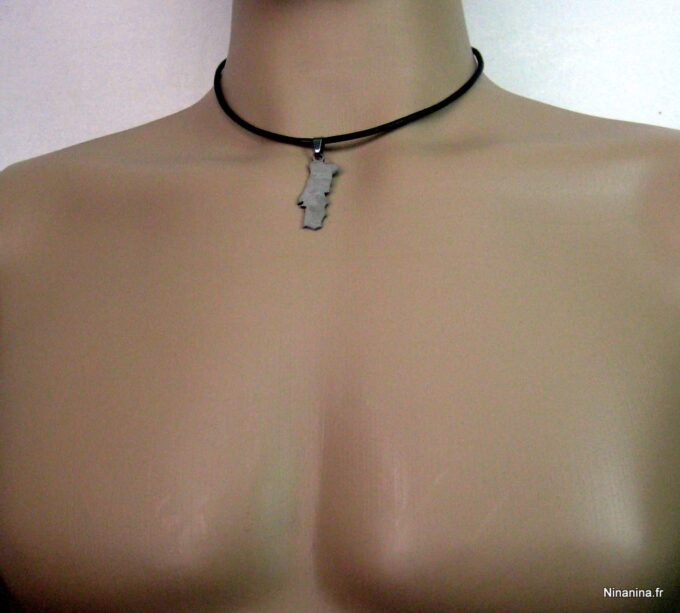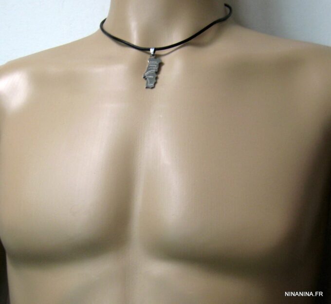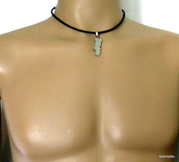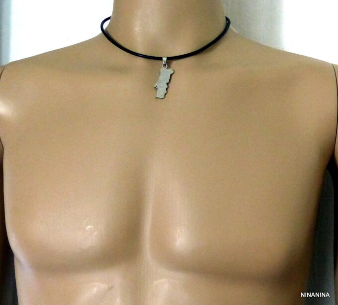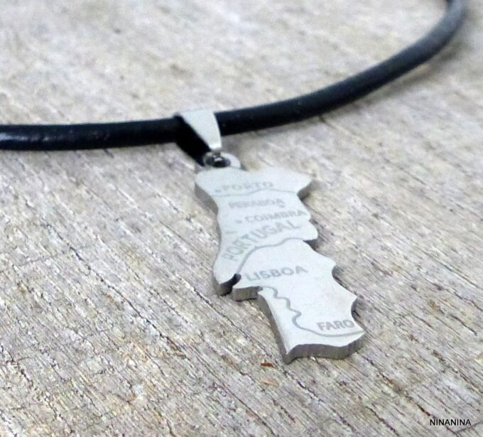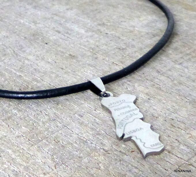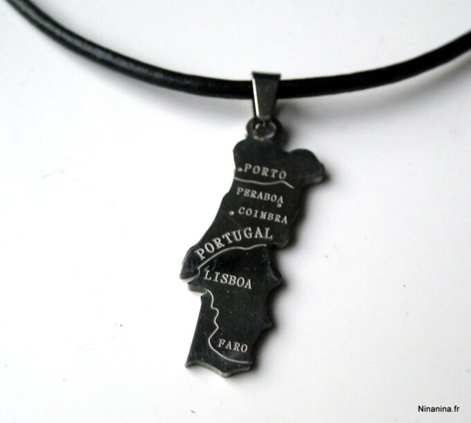 Collier homme cuir PORTUGAL acier argenté composé d’un pendentif PORTUGAL en acier inoxydable monté sur un lien de cuir véritable (3mm de diamètre).