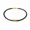 Collier homme en cuir tressé noir avec perles dorées en acier inoxydable. Bijou masculin artisanal, élégant et moderne pour un style tendance.