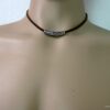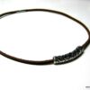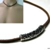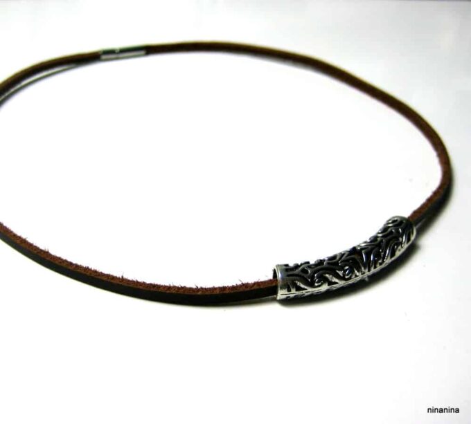 Collier lacet cuir marron homme ou femme perle tube composé d’une demi-lune ciselée en métal argenté montés sur cordon de cuir marron chocolat (3mm de large).