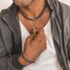 Profitez de l’été avec ce beau collier masculin que vous pourrez porter sur la plage ou sous un vêtement et qui ne vous quittera plus, été comme hiver et sera également un cadeau exceptionnellement glamour et tendance à offrir pour une occasion toute particulière comme la St Valentin.