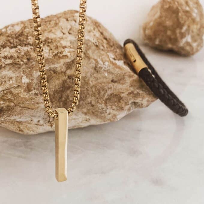 Découvrez ce Collier Homme Doré Acier Or Barre Verticale chic et stylé!