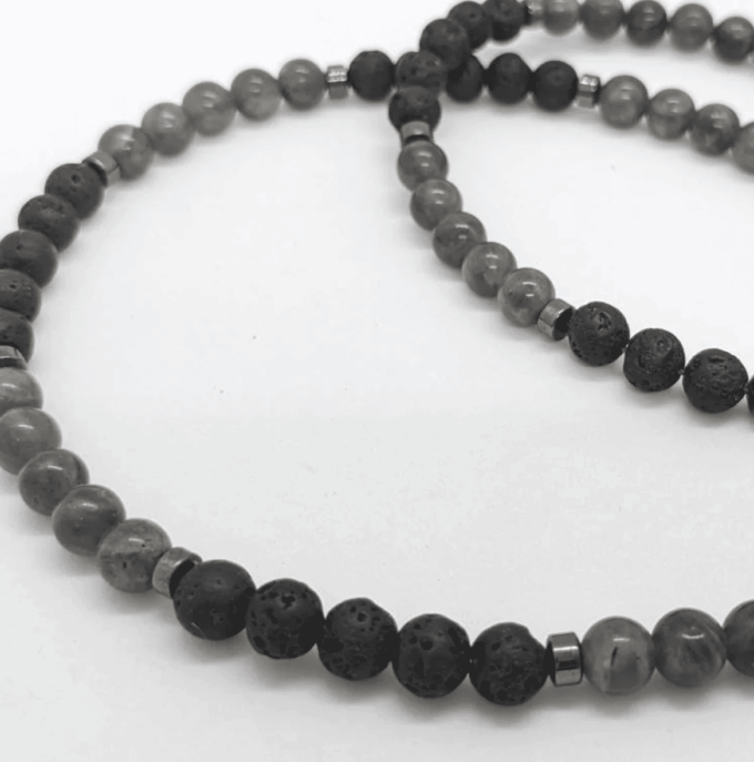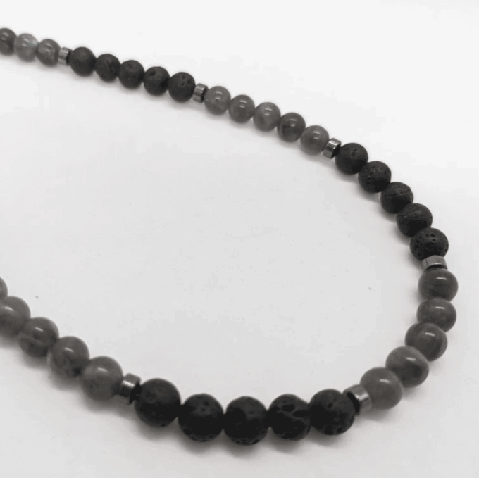 Le Collier Homme Labradorite Grise Et Pierre De Lave : Un bijou de caractère, entre énergie brute et élégance minérale