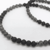 Ce Collier en pierre naturelle homme de haute qualité est fabriqué à la main, de façon artisanale et en série limitée. Il se compose de labradorites grises et de pierres de lave noires de 6mm de diamètre montées en alternance sur un fil incassable. Des intercalaires en acier inoxydable noires séparent les pierres montées par 5.