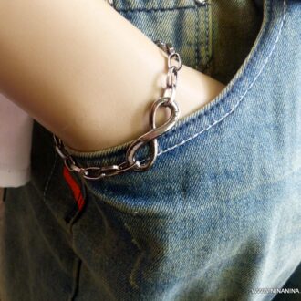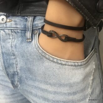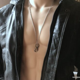 Collier symbole infini pour homme en métal noir composé d’une entretoise infini en métal noir « gunblack » montée sur une chaine maillons ovales en métal noir.