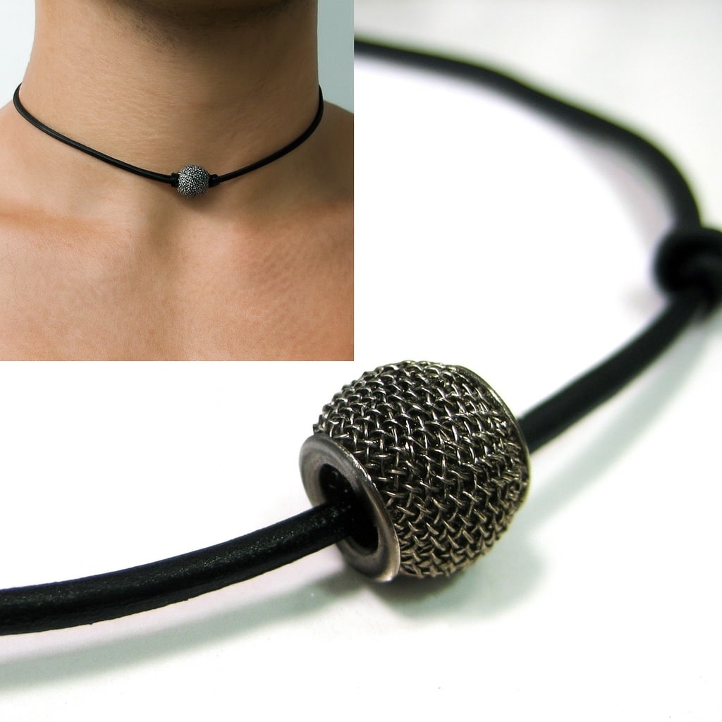 Collier homme en cuir ajustable avec perle résille noire, entièrement artisanal, confortable et tendance — le tout à petit prix.