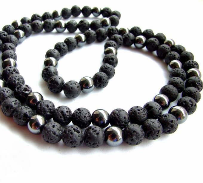 Vous allez craquez pour ce Collier homme pierre de lave volcanique et hematite long ! Composé de boules en pierre de lave et hematite de 8 mm de diamètre montées alternativement sur un fil de nylon solide et resistant, il se termine par un fermoir mousqueton en métal noir, sûr et facile d’utilisation. Pour les hommes virils, les purs et durs, ce collier en boules noires ne manquera pas de vous séduire !