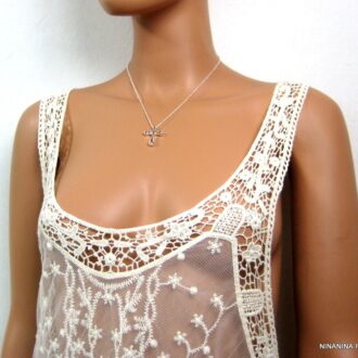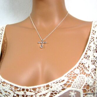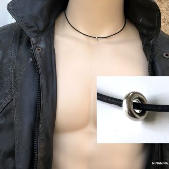 Collier homme cordon daim croix plaqué argent composé d’une croix en plaqué argent montée sur un cordon en daim véritable (3 mm de diamètre).