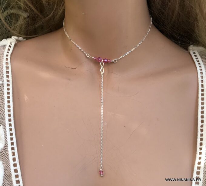 Simplicité, classe et raffinement, ce Collier infini argent swarovski cravate perles roses brillera au cou d’une jeune femme avec classe et élégance! Voici un collier swarovski à la fois élégant et original composé de perles rondes en cristal de Swarovski rose montées sur une Chaîne en Argent 925 maille forçat.