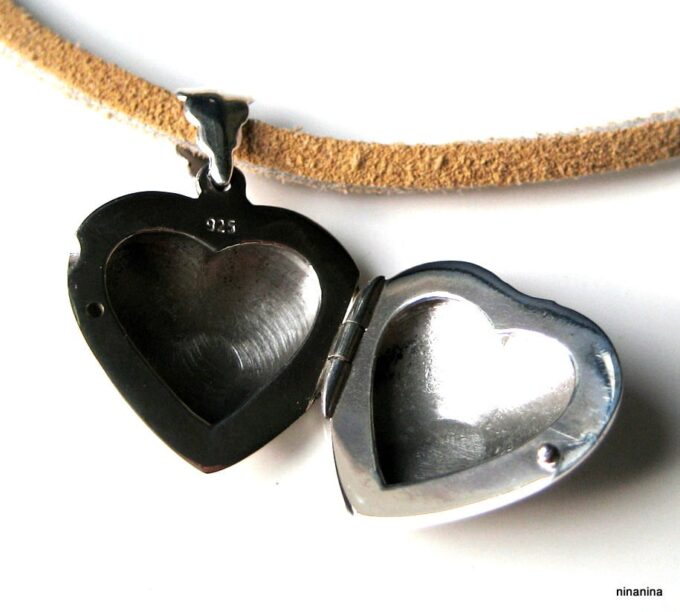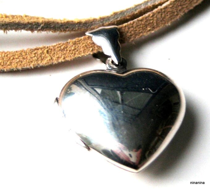 Pendentif porte photo coeur Argent – collier lacet cuir